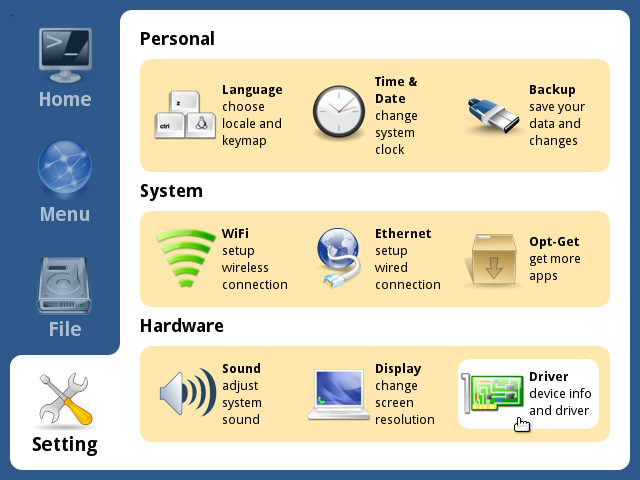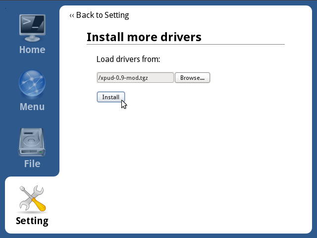 由于体积限制,xPUD 只有最基本的驱动程序。你可以通过安装驱动程序来取得更完整的硬件支持,同时仍可保持系统的轻巧。